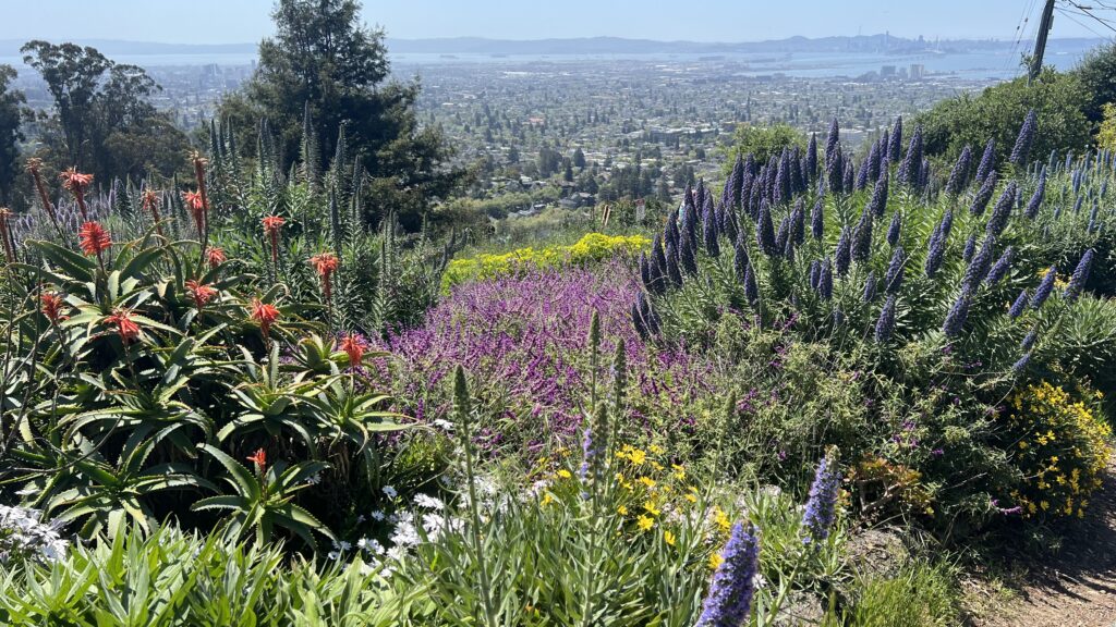 Join Nature Bloomers to experience some of the most scenic trails in the East Bay! We will make our way up Panoramic Hill, following the beautiful Panoramic Ridge along the Upper Strawberry Canyon Fire Trail to Chaparral Peak. From there, we’ll descend via the newer fire trail below Grizzly Peak and reconnect with the lower Strawberry Canyon trail. Along the way, you will enjoy sweeping views of San Francisco, Oakland, and the Bay, surrounded by eucalyptus, pine, and oak forests. We’ll meet in the parking lot at 9:30 AM and depart promptly at 9:45 AM.
